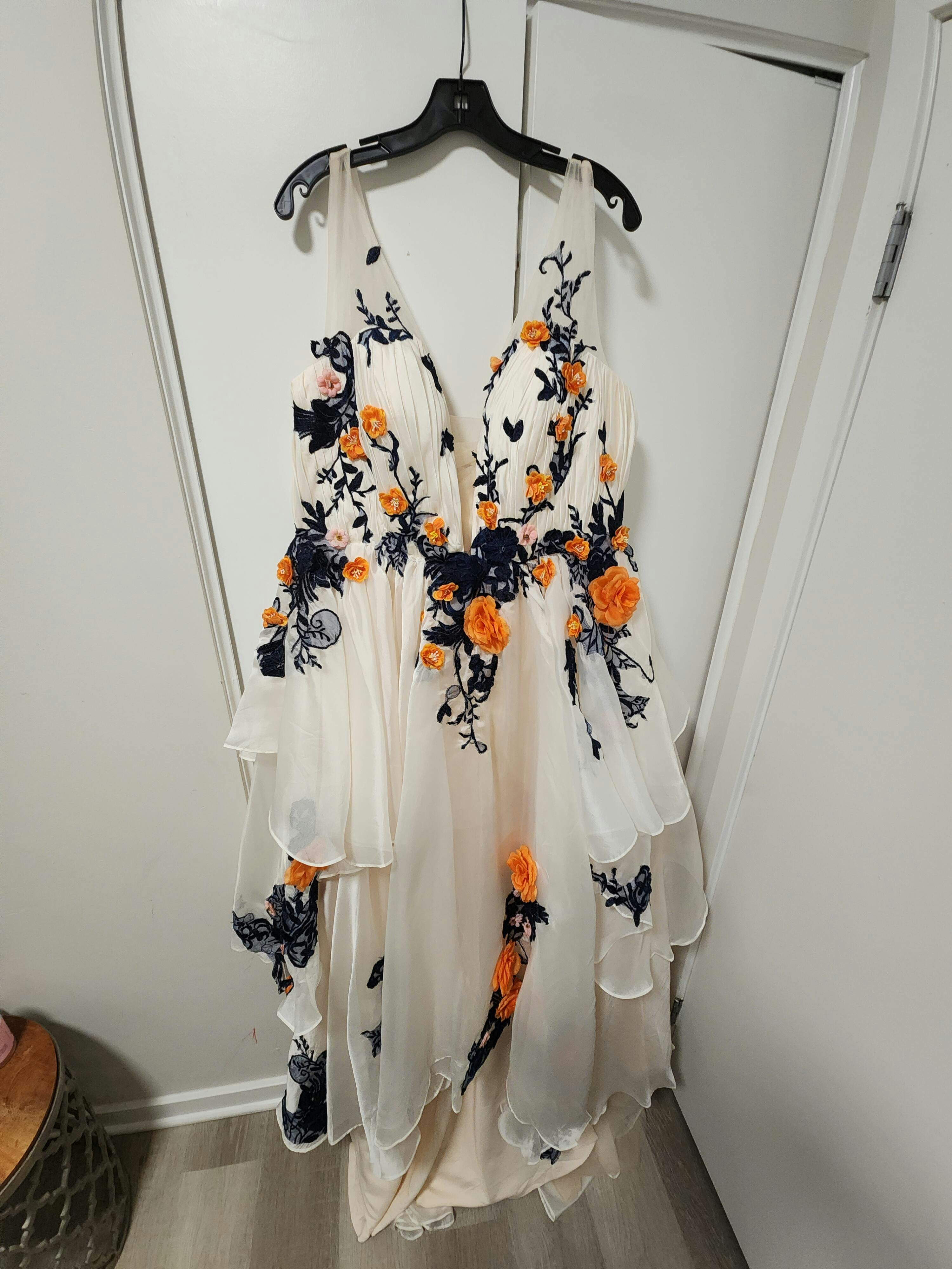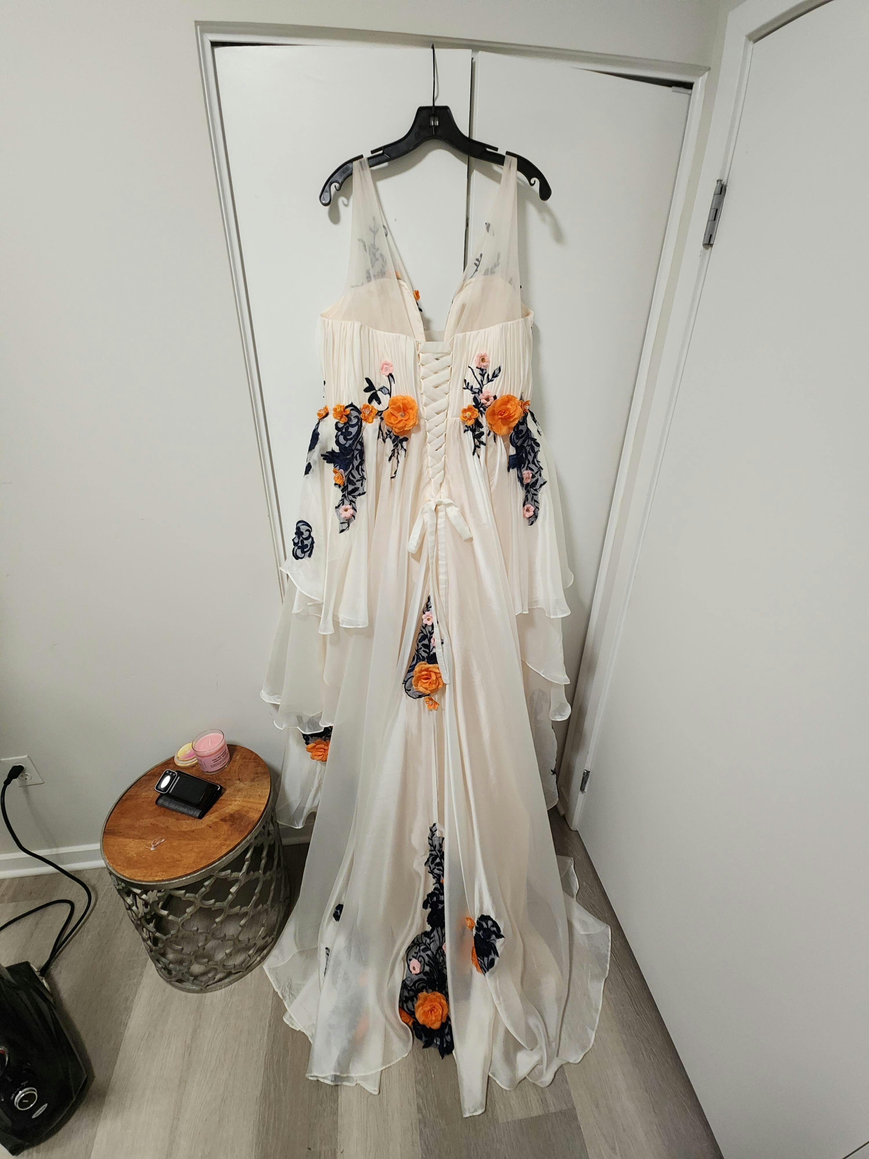 - بعض الأنماط تحتوي على راحة مضافة لراحتك. إذا كنت بين المقاسات، يُنصح بالاتصال والتحدث إلى المصمم أو اطلب الفستان بمقاس مخصص. التجويف إلى قياس الحاشية للفساتين بطول الأرض بالمقاس القياسي يشمل 2 إنش إضافية لتناسب الكعب العالي.