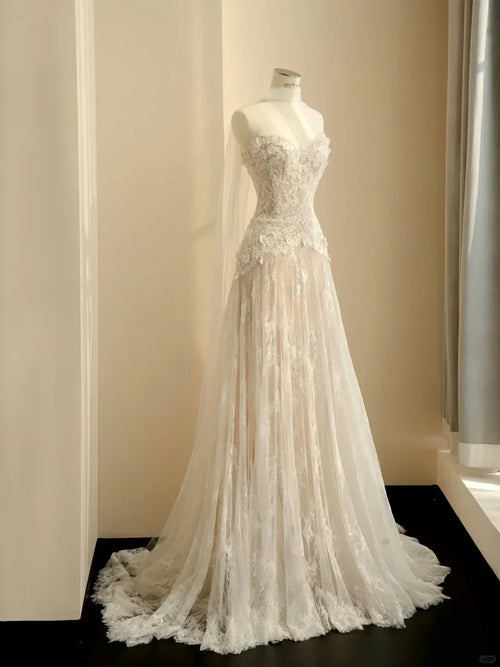 Sweetheart Lace Chiffon Corset Long Prom Dresses Ruffle PSK526