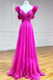 Erleben Sie das lange Aadhya-Ballkleid mit Schnürung, V-Ausschnitt, Rüschen und Plissee in Fuchsia. Eine atemberaubende Mischung moderner Weiblichkeit. Dieses exquisite Chiffonkleid ist in Gelb, Weiß, Fuchsia und Himmelblau erhältlich. Die A-Linien-Silhouette fällt bis zum Boden. Die Schleppe und der V-Ausschnitt sorgen für einen schmeichelhaften und verführerischen Look. Dieses Kleid eignet sich perfekt sowohl für Abend- als auch für formelle Anlässe. Die Plissee-Details verleihen Struktur und Tiefe, während die Schnürung am Rücken für eine individuelle Passform sorgt. Perfekt für den Abschlussball, formelle Anlässe oder besondere Anlässe. Das Aadhya-Kleid strahlt Stil und Ausgeglichenheit aus.