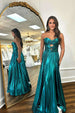 Langes Ballkleid in Smaragdgrün mit herzförmigem Ausschnitt und metallischer Plissee-Optik PSK591