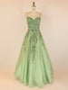 Vestido de fiesta de tul con escote en V y largo hasta el suelo con apliques de encaje S26312