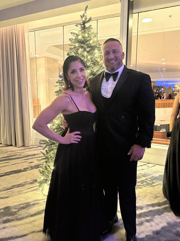 Coloque la cinta métrica en la parte superior de los hombros. Mida desde la borde del hombro izquierdo hasta el hueso prominente del cuello Ubicado en el centro de la parte posterior del cuello y continuando hasta el borde del hombro derecho.