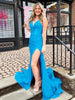 Sumérgete en la elegancia con el vestido de fiesta de sirena con cola larga y brillo azul marino. Este impresionante vestido presenta una favorecedora silueta de sirena y está confeccionado en lujoso satén en un azul marino intenso con vibrantes detalles fucsia. Ideal tanto para vestidos de noche como para vestidos formales. Su escote en V y diseño sin mangas crean un perfil seductor. La espalda con cordones garantiza un ajuste personalizado. Con una elegante cola y una abertura pronunciada, el vestido está adornado con lentejuelas brillantes que capturan la luz con belleza. Perfecto para quienes buscan una combinación de sofisticación y glamour, este vestido te convertirá en el centro de atención en tu noche especial.