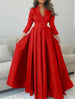 Vestido elegante de noche formal con mangas largas y escote en V y pliegues
