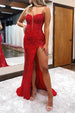 Este elegante vestido de corte sirena es perfecto para cualquier noche de graduación. Los intrincados detalles de encaje realzan su belleza y su vibrante color rojo le da un toque de glamour. Los tirantes finos proporcionan un ajuste cómodo, mientras que la abertura le da un toque divertido. Disponible también en negro y morado.