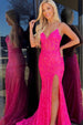 Presentamos "Lakelynn", una fascinante fusión de vibrante naranja y exuberante fucsia. Encapsula la esencia de la elegancia atemporal y el encanto moderno. Se adapta con elegancia a cada curva con su silueta de sirena. Lakelynn está confeccionado con un encantador encaje de lentejuelas que brilla delicadamente con cada movimiento, iluminando tu camino al deslizarte por la habitación. Los tirantes finos atraen las miradas hacia un pronunciado escote en V, mientras que un corpiño tipo corsé ilusión crea un perfil esbelto. Una sensual abertura revela un juguetón toque de pierna, complementando la suave curva de la cola de la corte que se arrastra con gracia real. Lakelynn es una opción espectacular para vestidos de noche, ofreciendo encanto y sofisticación. Como vestido formal, su radiante diseño te garantiza ser el centro de atención en cualquier gran evento.