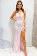 Presentamos Kalani, un vestido de fiesta estilo sirena, una sinfonía visual de elegancia y encanto. Kalani presenta una fascinante composición de apliques de encaje sobre tul, con una segunda capa brillante de lentejuelas, creando un look rico en textura y brillo. Disponible en sofisticados tonos rosa y lavanda, este vestido es una vibrante expresión de elegancia juvenil. Ideal tanto para vestidos de noche como formales, con tirantes finos y escote en V que cae en cascada sobre un delicado corpiño tipo corsé ilusión, meticulosamente adornado con apliques de encaje y lentejuelas. La abertura lateral añade un toque de audaz elegancia, permitiéndote lucir tu estilo con confianza. El vestido fluye hasta el suelo con una cola amplia que irradia un encanto majestuoso.