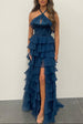 Realza tu estilo en tu próximo evento con el vestido de fiesta con volantes, escote halter, abertura y capas. Este impresionante vestido de corte A está confeccionado en gasa ligera que fluye maravillosamente en colores cautivadores como el rojo, el verde y el verde azulado, lo que te permite elegir el tono perfecto que refleje tu personalidad. La silueta en forma de A favorece a todo tipo de cuerpo, asegurando un ajuste elegante y favorecedor. El escote halter añade un toque de sofisticación y proporciona un excelente soporte, mientras que el detalle de la abertura ofrece un toque de encanto. Los adornos de volantes escalonados crean un look juguetón pero elegante, añadiendo dimensión y textura al vestido. Una abertura atrevida realza tu silueta, dejando ver tus piernas a la vez que añade un toque de dramatismo y estilo a tu conjunto. ¡Abrazate a tu elegancia y encanto con el vestido de fiesta con volantes, escote halter, abertura y capas!