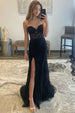 Realza tu atuendo de graduación con nuestro vestido largo de encaje, sin tirantes, con corsé negro y abertura. Este elegante vestido presenta un corpiño de encaje y un diseño sin tirantes para un look sofisticado y atemporal. Perfecto para cualquier ocasión formal, este vestido de graduación negro sin duda causará sensación.