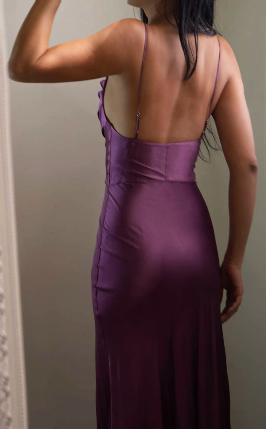 EXCLUSIVE AT STUDIO ALASHANGHAI: Introducing the Manon Gown. a timeless and elegant masterpiece crafted from 19 momme mulberry silk. This exquisite piece features a gathered cowl-neck bodice and a floor-pooling skirt. exuding sophistication. The open back adds to its beauty. with adjustable straps for a personalized fit.