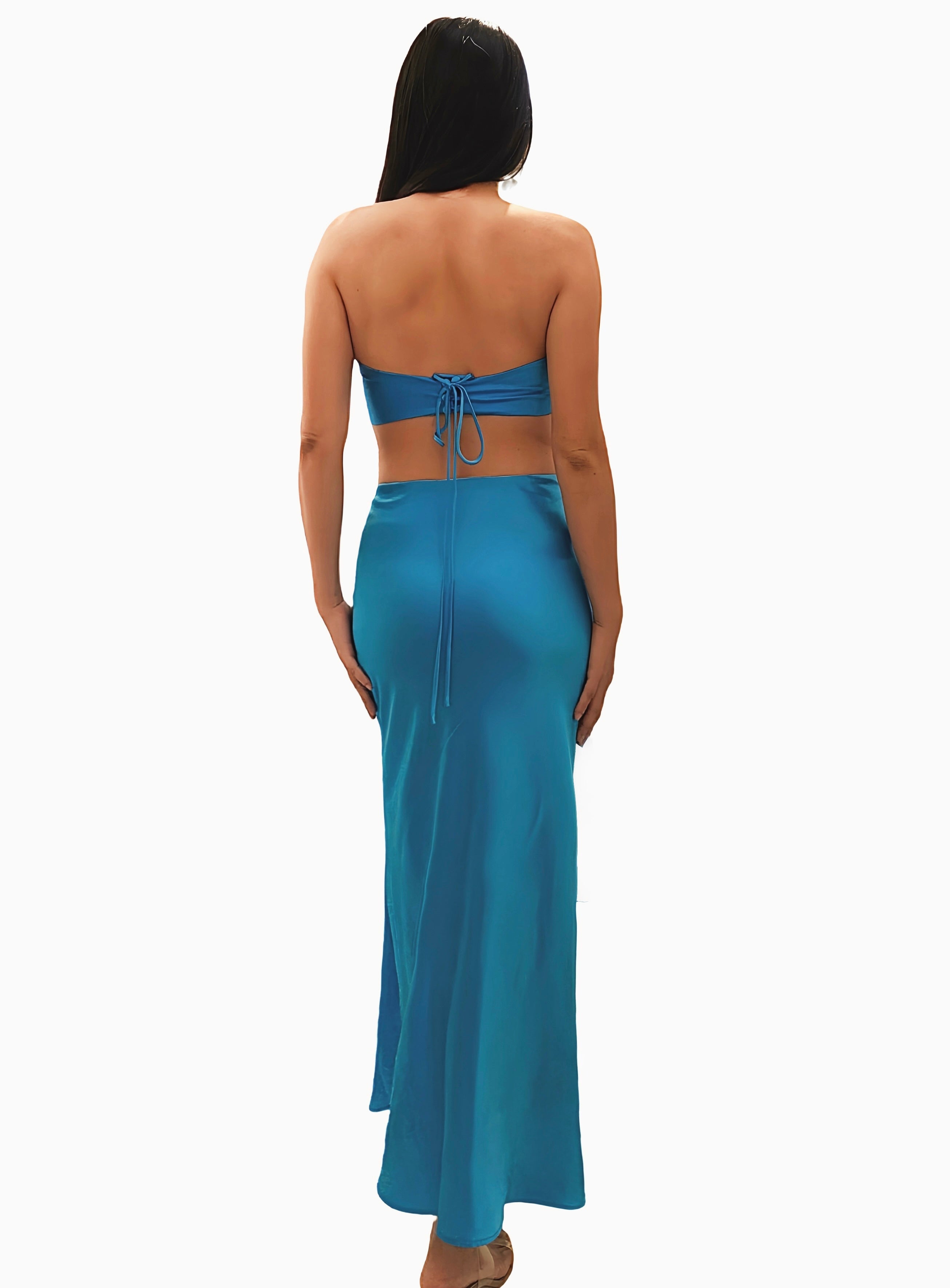 *Model is 172cm tall. with a bust of 34 inches. waist of 27 inches. and hips of 37 inches. wearing the Allure Set customized in #02 Azure Blue color. size US4