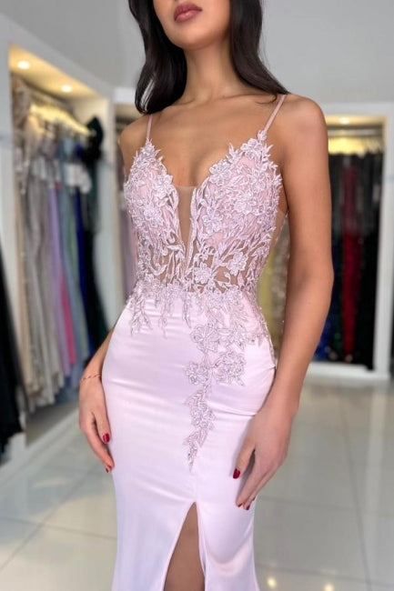 Discover the perfect balance of elegance and modern style with our Amazing Column Satin Lace V-Neck Sleeveless Prom Dresses. Crafted with luxurious satin and delicate lace. this dress features a flattering v-neckline and a daring split front design. Perfect for any formal occasion. this dress is guaranteed to make you feel confident and beautiful.