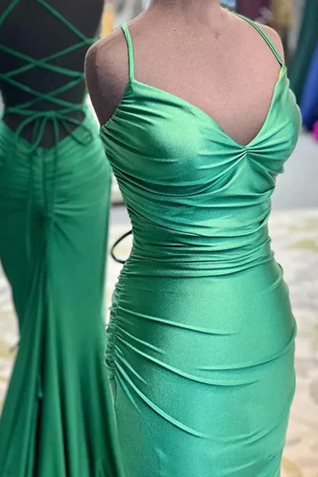 Turn heads in the Barrie | Mermaid Spaghetti Straps Blue Satin Long Prom Dress. a stunning blend of elegance and bold sophistication. The mermaid silhouette gracefully contours your body. accentuating your curves before flaring out in a sweep train that adds a dramatic finish. The royal blue satin fabric offers a rich. glossy sheen that exudes luxury. ensuring you shine at any event. The flattering Spaghetti Straps adds a modern. alluring touch. perfectly complementing the sleeveless design for a timeless. elegant look. The daring side slit adds a touch of drama and movement. allowing you to walk and dance with ease. A lace-up back ensures a customizable fit. giving you comfort and confidence throughout your special evening. With its combination of sleek satin. flattering mermaid shape. and bold slit. the Mermaid Spaghetti Straps Blue Satin Long Prom Dress is your ultimate choice for both elegant evening gowns and formal dresses.