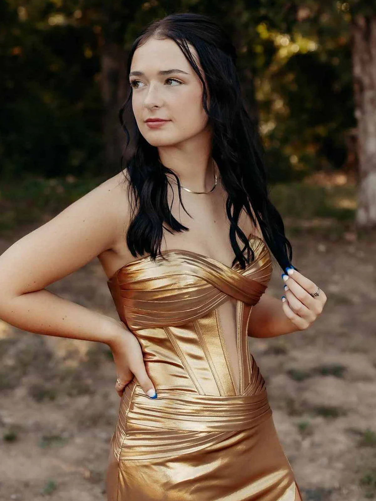 Bencelina presents a timeless yet contemporary design that exudes elegance. Crafted from sumptuous satin. this dress features a classic mermaid silhouette that beautifully embraces your curves and flows into a stunning court train. The strapless sweetheart neckline tastefully highlights your décolletage. while the sleeveless style ensures freedom of movement. Available in a variety of colors. including black. pink. and peacock. you can easily find the perfect shade to reflect your personal style. A versatile option perfect for both evening dresses and formal dresses. with its intricate pleating enhances its sophistication. and a daring slit offers a stylish glimpse of your legs. Finished with a sleek zipper closure. Brylee strikes the ideal balance between chic and comfort.