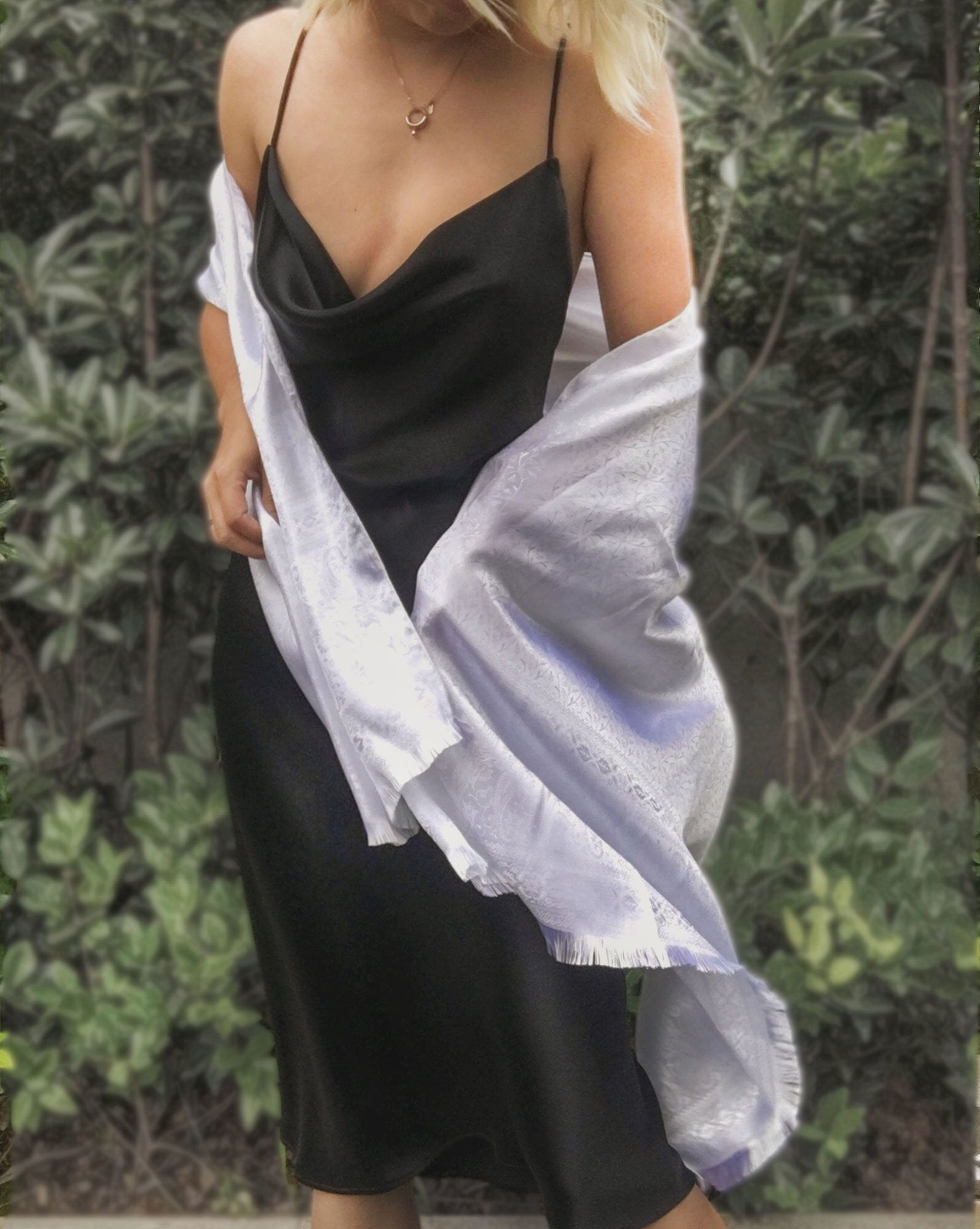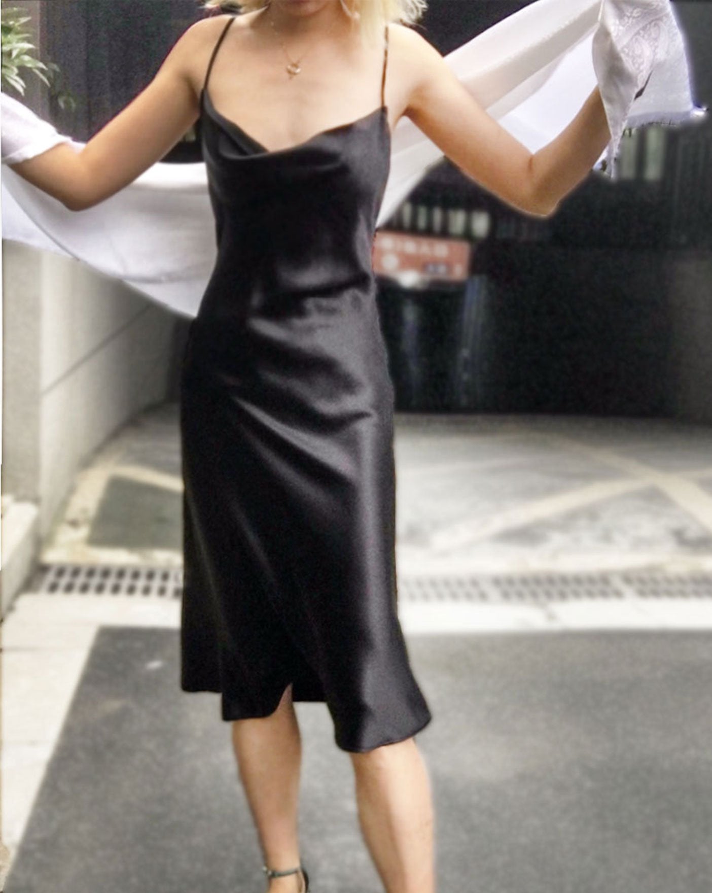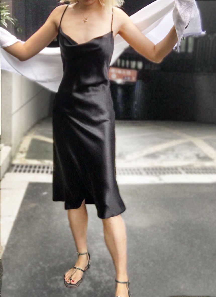 /Black Crossback Organic Satin Silk Cowl Neck Slip Dress by alashanghai