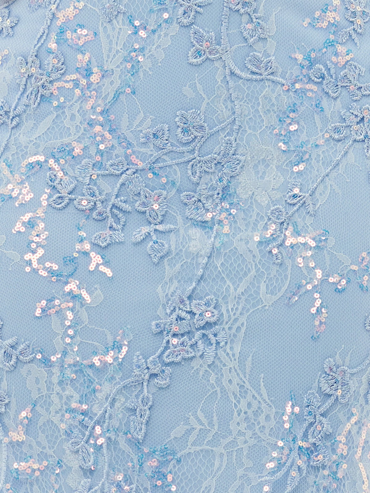 Elevate your prom night with the stunning Terry dress. This sleek mermaid silhouette is crafted from luxurious sequin fabric and is available in a captivating palette of Black. Blue. Sky Blue. Lilac. Hot Pink. and Red. ensuring you'll be the center of attention. The strapless sweetheart neckline beautifully frames your shoulders. while the lace-up back ensures a perfect fit. The train with delicate lace appliques adds a touch of elegance. Terry is an excellent option for formal dresses. offering both sophistication and glamour. As an evening dress. its dazzling fabric and elegant details guarantee you'll shine all night long.