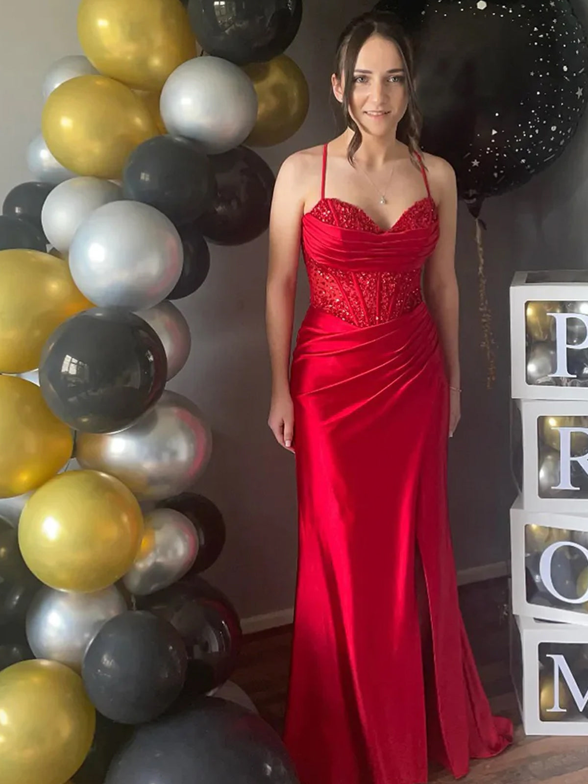 Exude elegance and sophistication in the Khaki Spaghetti Straps Slit Mermaid Satin Prom Dress with Beadings. This refined dress features a sleek spaghetti straps neckline and a curve-enhancing mermaid silhouette that flows effortlessly to a dramatic floor-length finish. The luxurious satin fabric glimmers softly. creating an understated yet radiant effect. This dress is a perfect choice for both evening dresses and formal dresses. with its intricate beadings adorn the bodice. adding a touch of glamour. while the daring thigh-high slit adds a bold and sultry edge. The lace-up back ensures a customized and secure fit. making you feel as confident as you look. Perfect for prom or any formal occasion. this khaki masterpiece is a timeless blend of sophistication and allure.