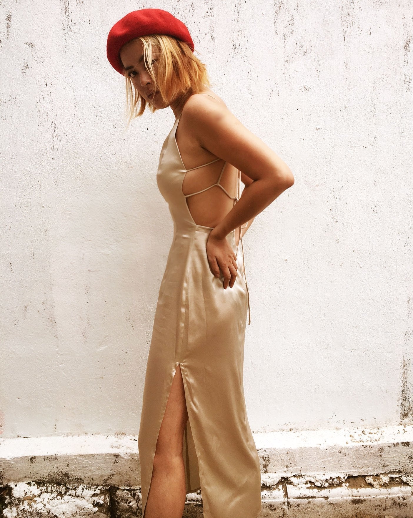 /Champagne Mulberry Silk Slip Dresss by alashanghai