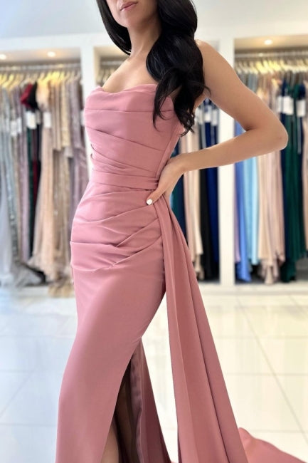 Look stunning in this elegant. long sleeveless evening dress. Crafted from delicate dusty pink fabric. this dress features a stylish side-slit that adds a touch of flair to the classic silhouette. Perfect for special occasions. you'll look beautiful and timeless.