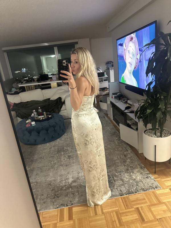 Hold the measuring tape at your hollow while a friend pulls it down to the length you want your dress.