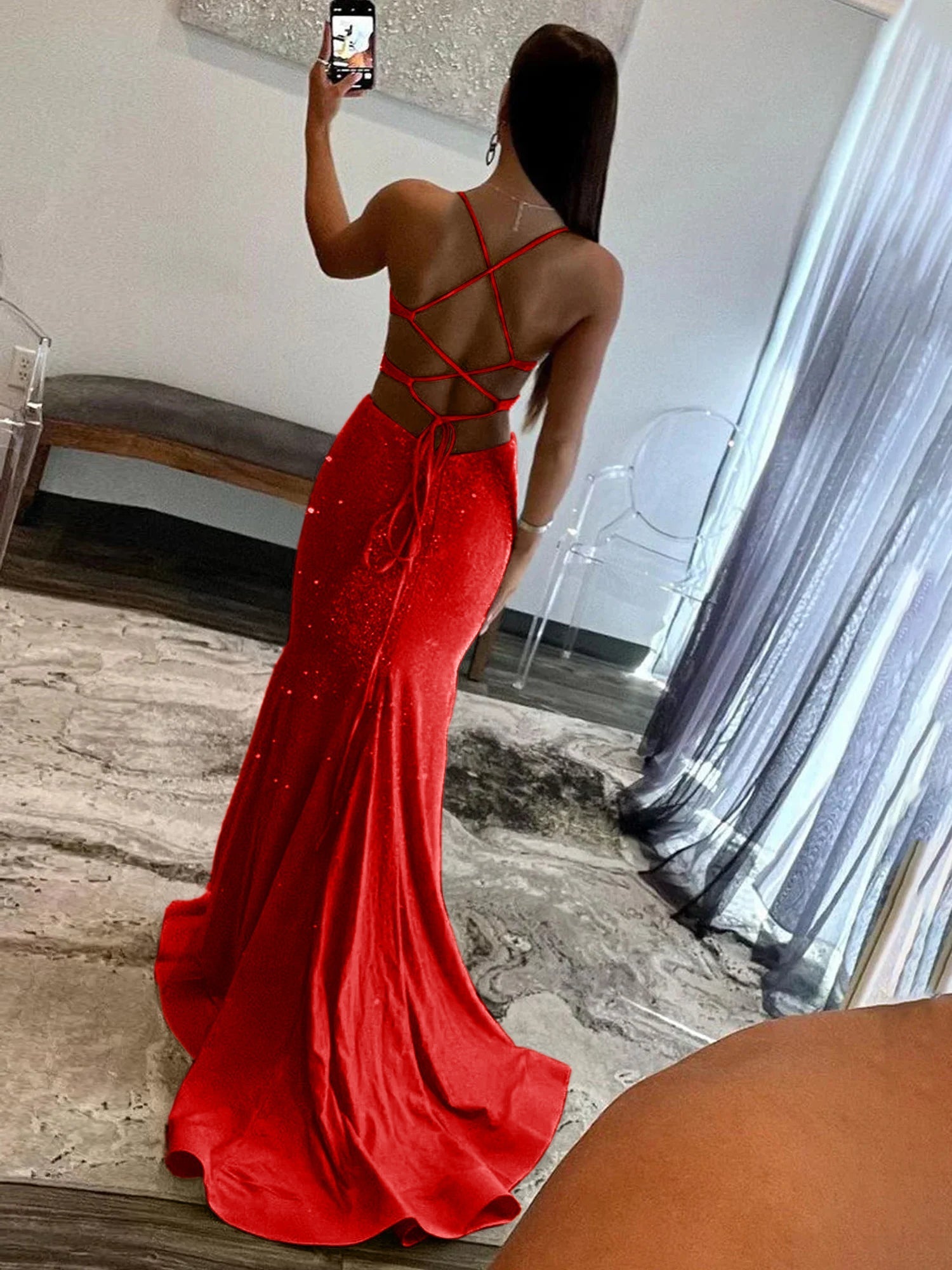 Radiate elegance and charm in this Sparkly Mermaid V Neck Yellow Sequins Prom Dress. This dress is designed in a flattering mermaid silhouette that hugs your figure with grace and glamour. A stylish choice suitable for both evening dresses and formal dresses. with its shimmering yellow sequin fabric adds a touch of dazzle. capturing the light with every movement. A deep V-neckline enhances the dress's allure. while the sleeveless design keeps it timeless and sophisticated. The lace-up back allows for a custom fit. adding a modern touch to this classic prom look. This dress combines elegance and sparkle for an unforgettable evening. perfect for making a statement!