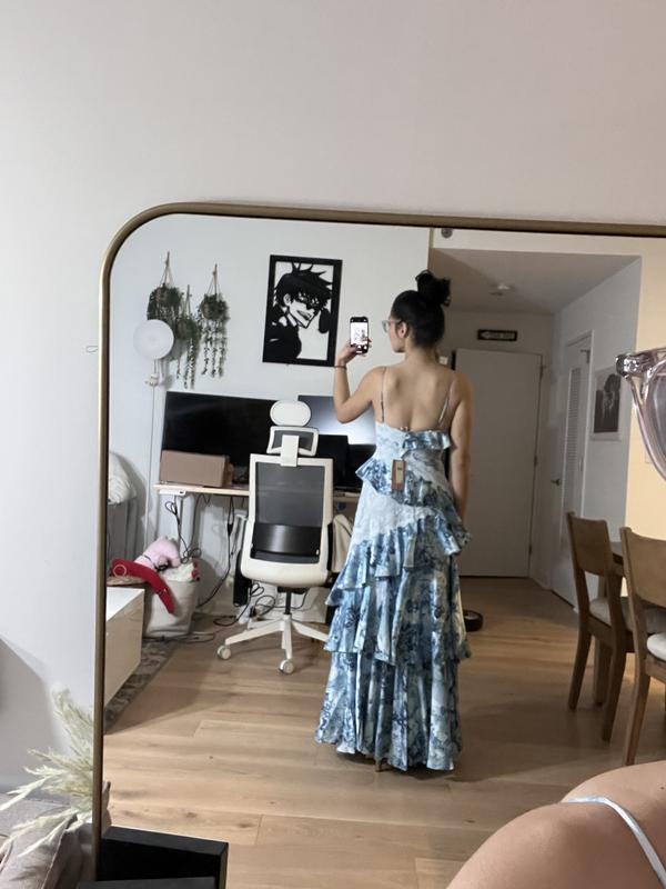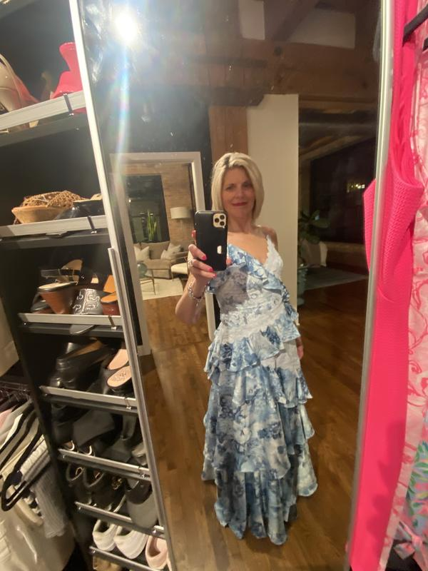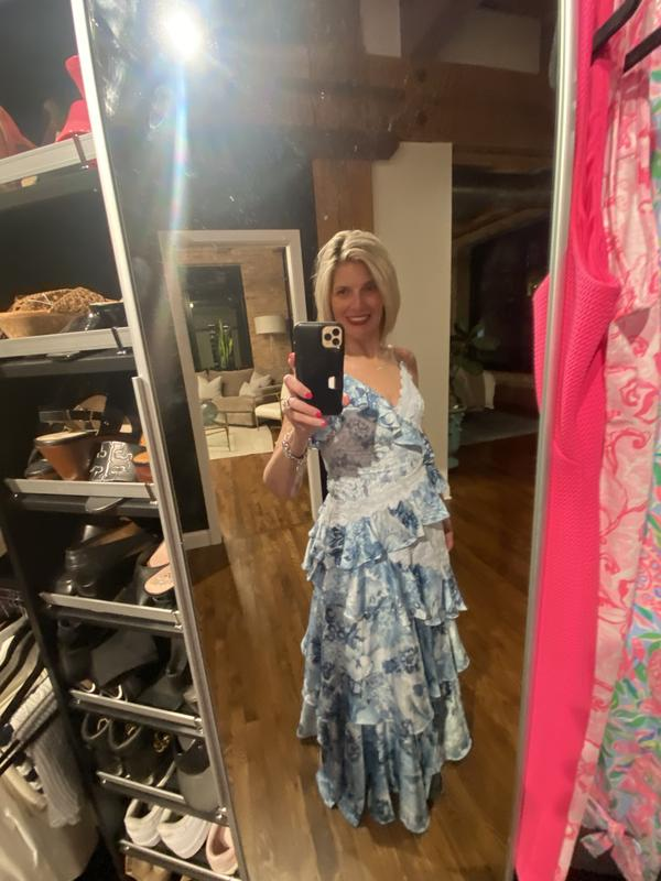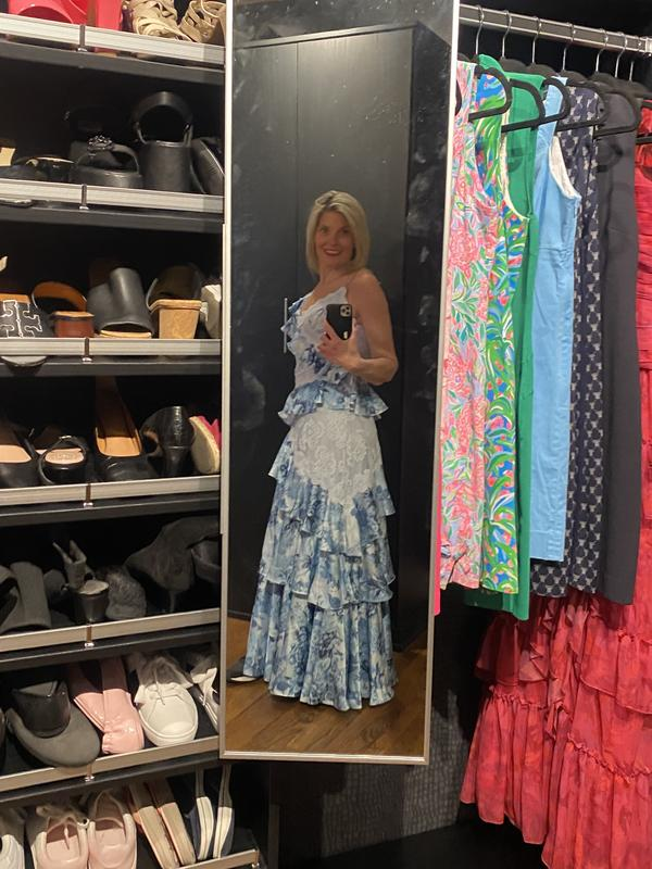 Hold the measuring tape at your hollow while a friend pulls it down to the length you want your dress.