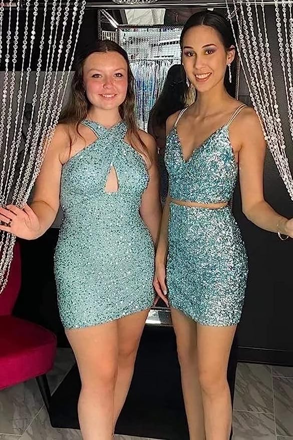 Make a statement with this Mini Bodycon Dress. As an industry expert. I'd like to highlight the benefits of the Halter Homecoming Dresses Short Prom Dresses for Teens. With its Orange Sequins Cross Front and Column V-neck Velvet Sequins design. this dress effortlessly adds sparkle and glamour to your homecoming look.