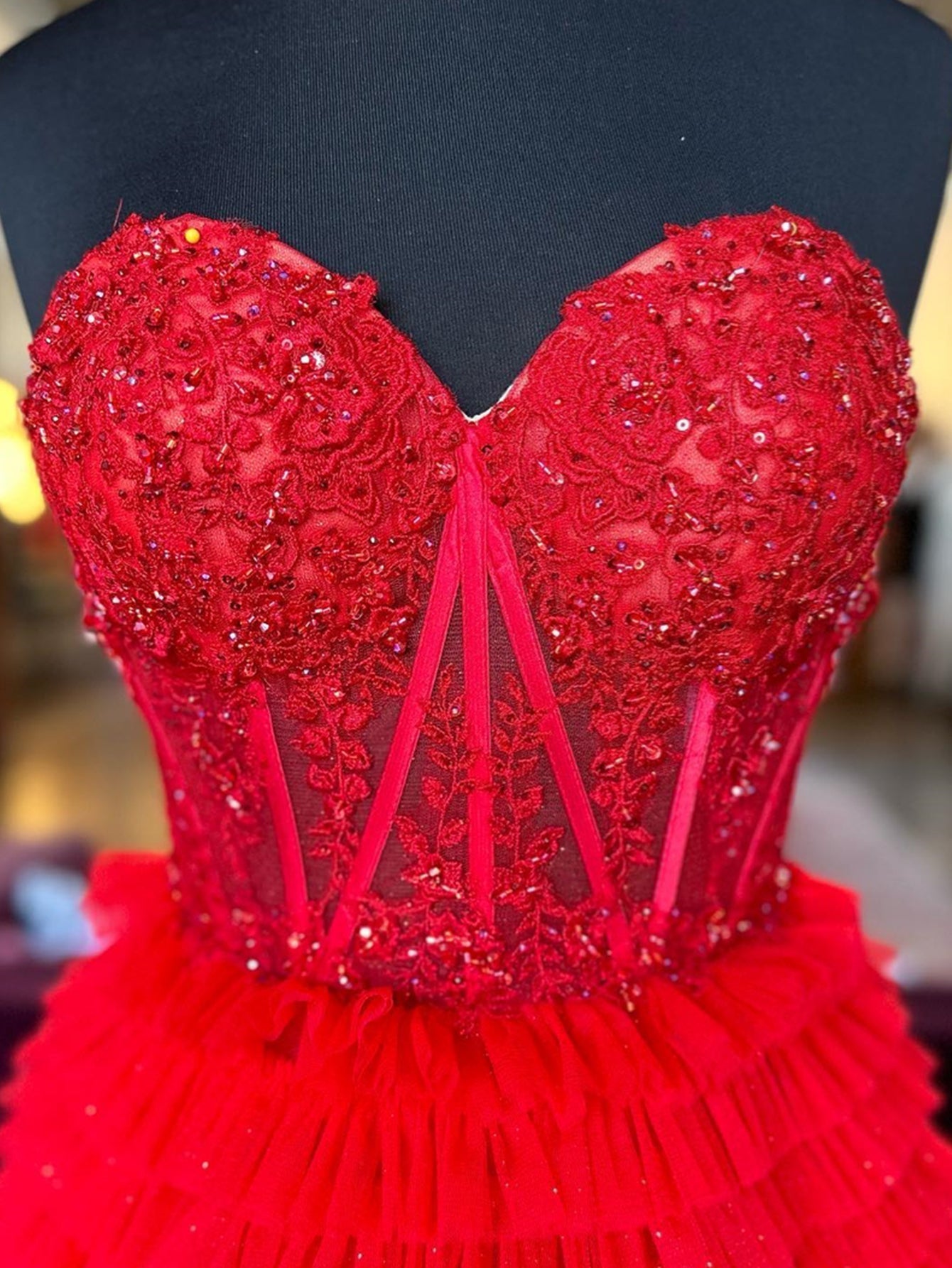 Elevate your prom experience with Adelyn—the A-line sweetheart prom dress that's the epitome of ethereal elegance. Drenched in colors from classic black to vibrant fuchsia. this floor-length gown shines bright in sparkling tulle fabric. The illusion corset bodice is adorned with intricate lace appliques and shimmering sequins. emphasizing the timeless sweetheart neckline. The tiered ruffled skirt floats down effortlessly. adding a romantic swirl with every step you take. while a thigh-high slit adds a daring twist. Cinched with a lace-up back. Adelyn fits like a dream. sculpting your figure to perfection. Get ready to be the belle of the ball.