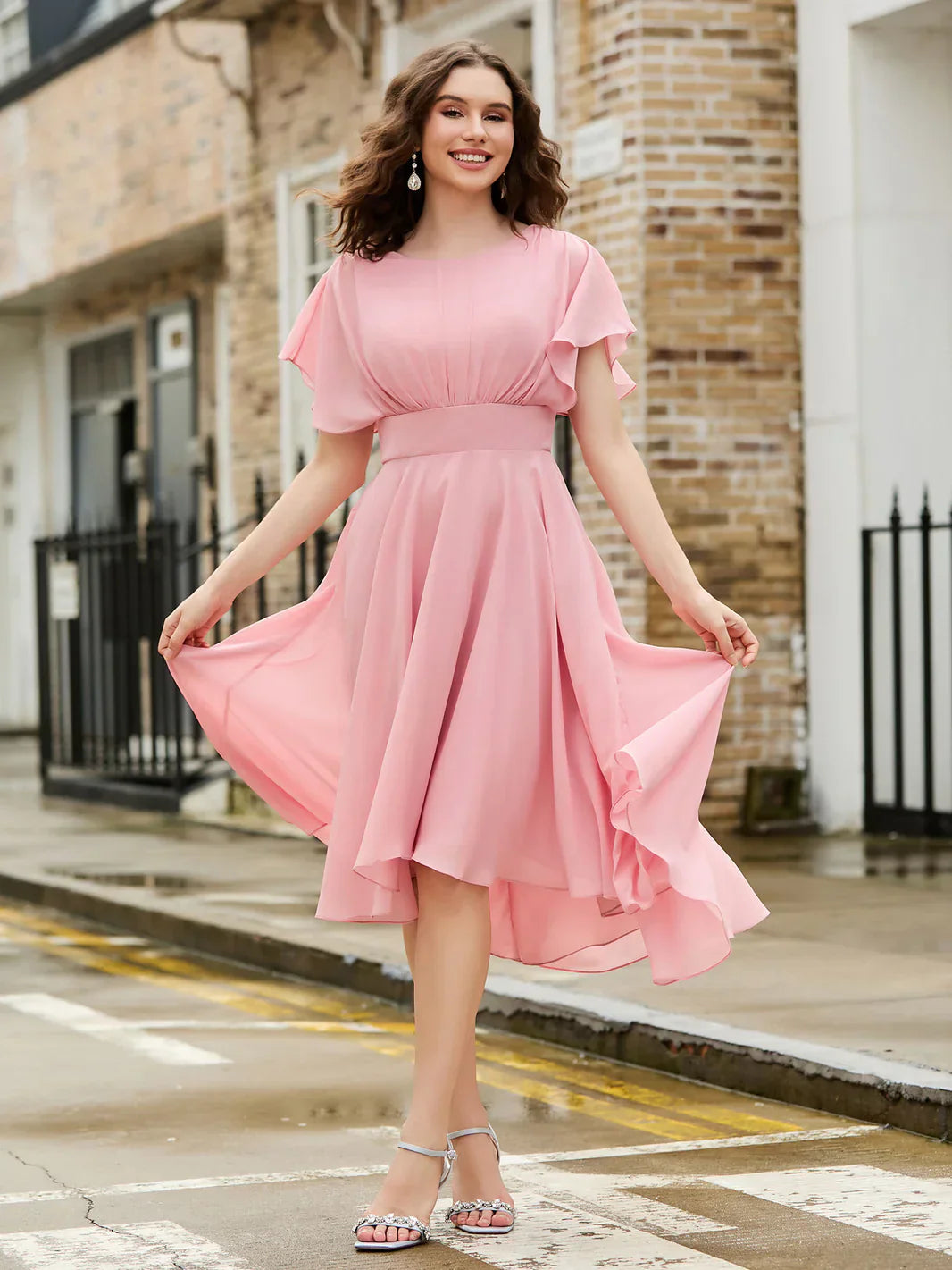 Elevate your prom look with our Flutter Sleeves Chiffon Prom Dress. The elegant flutter sleeves and cascading ruffles add a touch of romance. while the lightweight chiffon fabric ensures comfort all night long. Make a statement and turn heads in this stunning dress.
