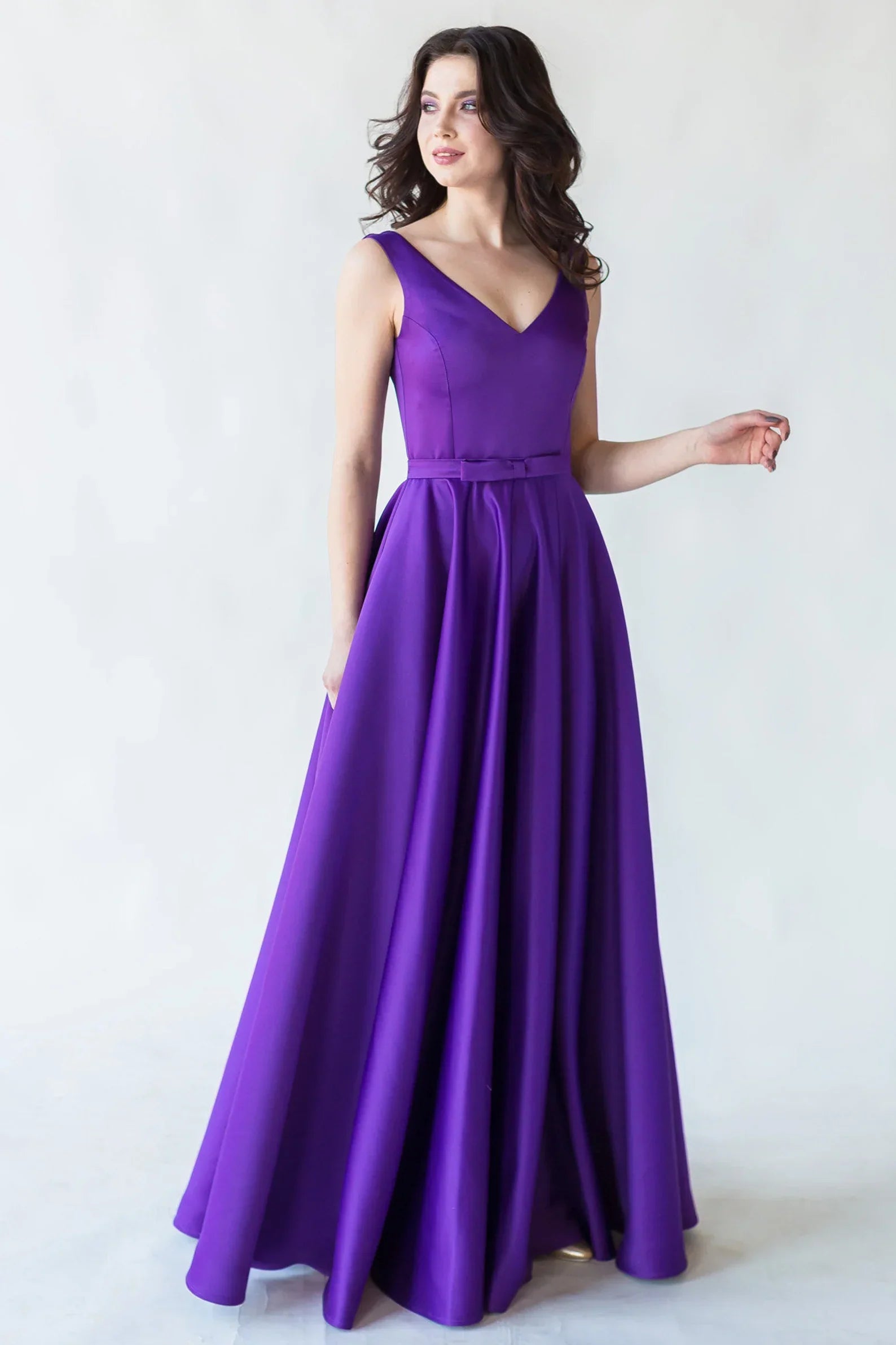 A line satin prom dress features a stunning corset lace-up back and a full skirt for a timeless and elegant look. Perfect for formal events or special occasions. this long satin evening gown is a classic choice that will make you stand out.