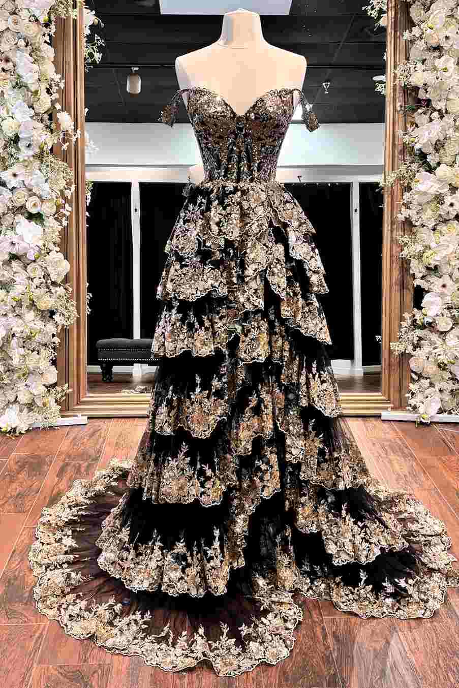 Stand out in the crowd with our "Kaira" dress. this Gorgeous Gold Off the Shoulder Sequin Long Prom Dress with Slit. A stylish choice suitable for both evening dresses and formal dresses. with its stunning gold sequins. catching everyone's eye while the off the shoulder design adds a touch of elegance. The long length and slit provide a flattering silhouette. making you feel confident and beautiful all night long. With its flattering v neckline. beautifully embellished bodice. and elegant flare with a daring slit. you'll feel like royalty as you make your grand entrance. Embrace the magic of the moment as you create unforgettable memories in this exquisite gown.