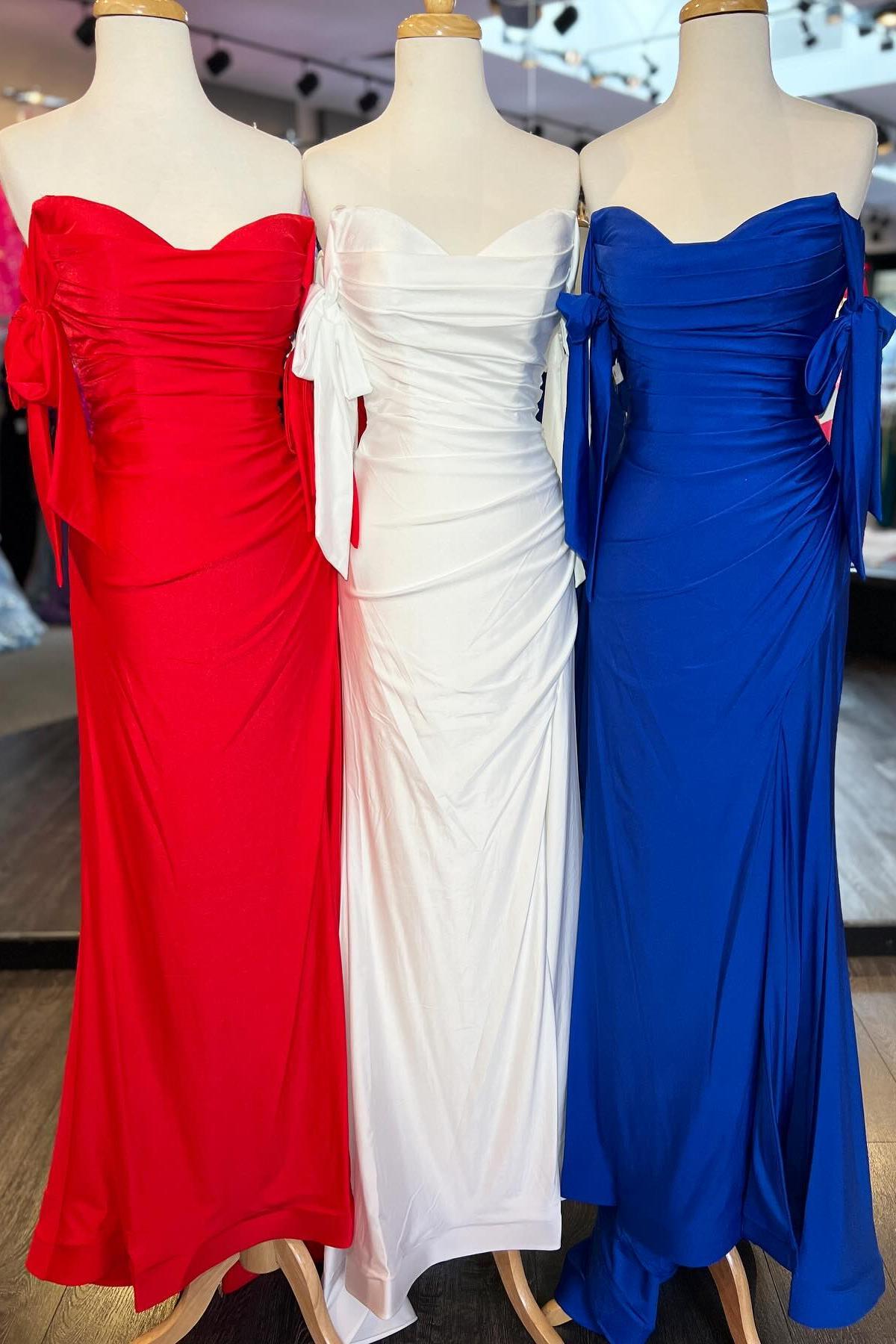 This stunning mermaid-style gown. available in a range of vibrant colors including lemon green. red. royal blue. white. sky blue. and lilac. is the perfect blend of elegance and bold style. This dress is a perfect choice for both evening dresses and formal dresses. with its off-the-shoulder neckline elegantly frames the shoulders and collarbone. creating a sophisticated and romantic look. while the sleeveless design adds a sleek and modern touch. The gown hugs the figure before flaring out into a floor-length hem. creating a dramatic silhouette. A lace-up back provides an adjustable fit. ensuring both comfort and style. The addition of a daring slit adds a touch of allure. making this gown a perfect choice for any formal occasion where you want to make a statement.