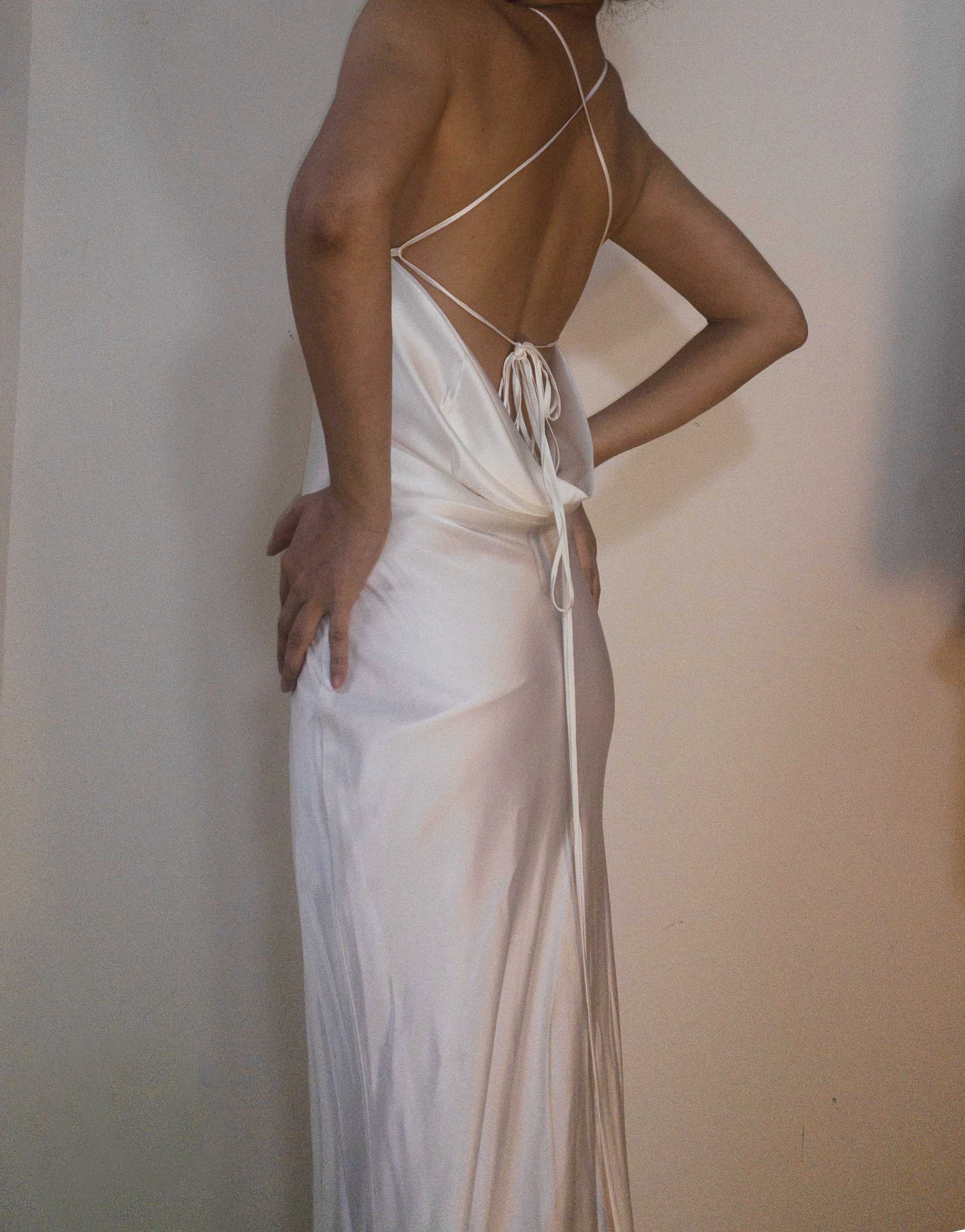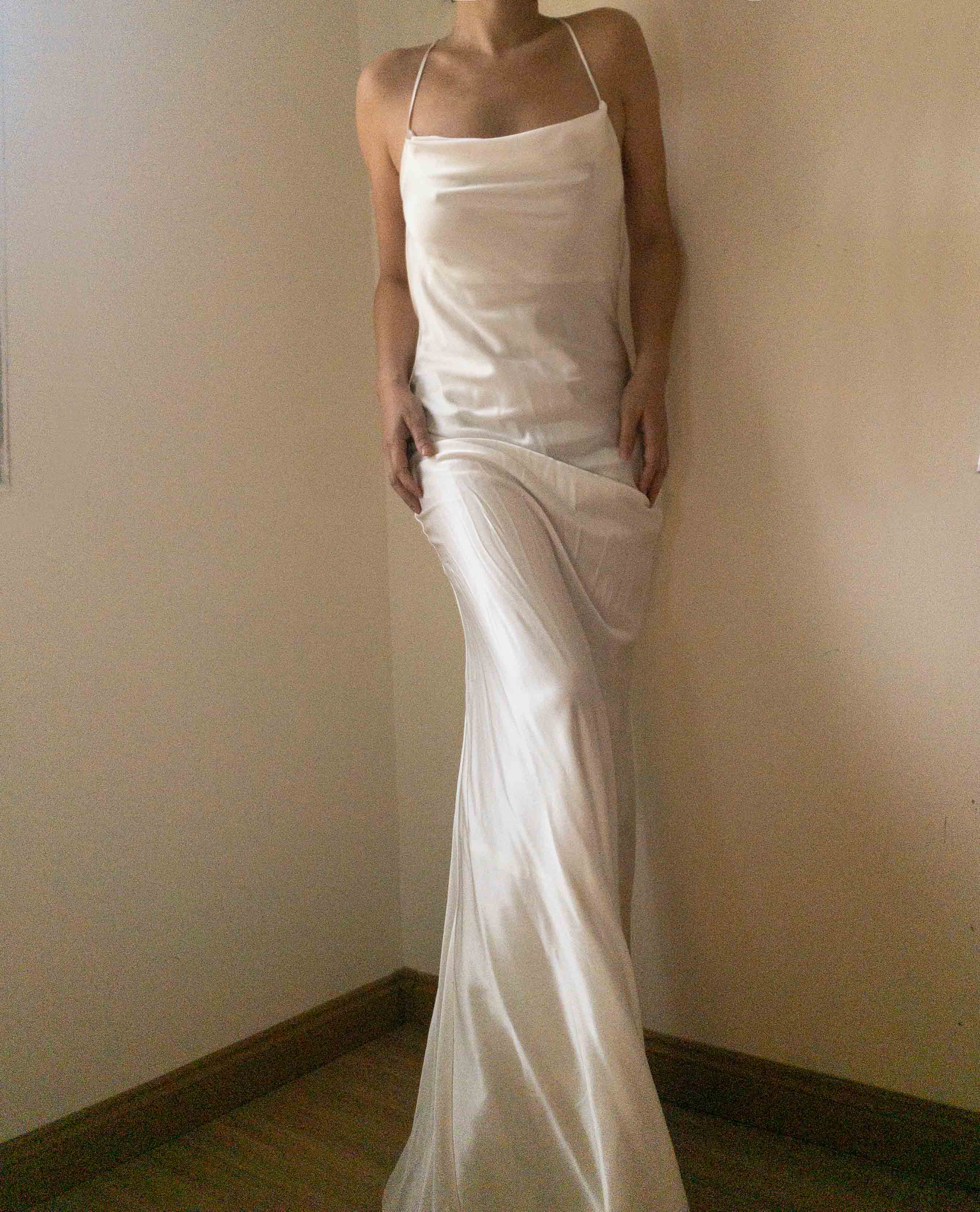 Hold the measuring tape at your hollow while a friend pulls it down to the length you want your dress.