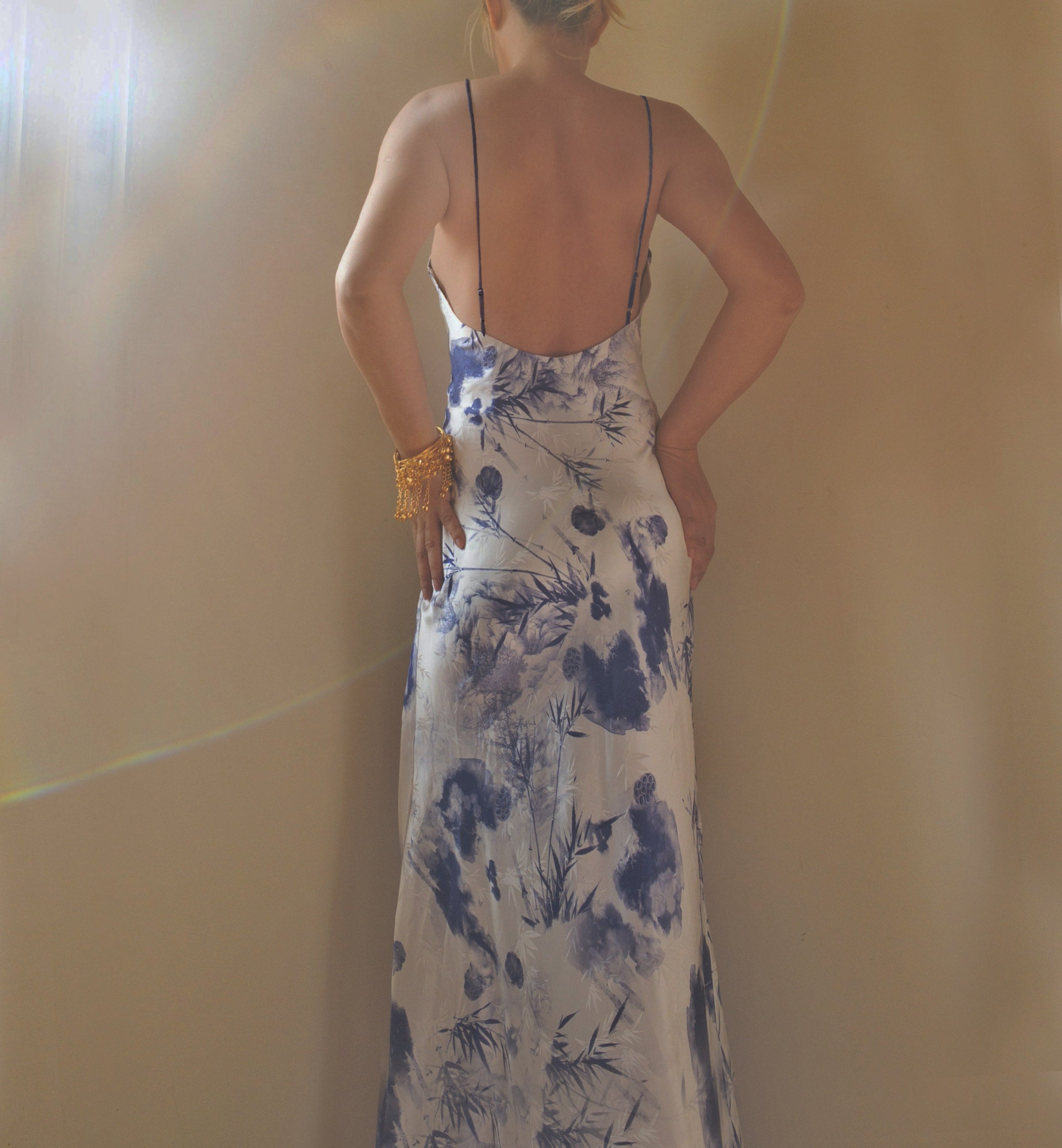 Named for and infused with the ethereal spirit of Fleetwood Mac's timeless classic. the 'Rhiannon' gown is a tribute to effortless elegance and captivating movement. Crafted from the softest 19 momme mulberry silk fabric. it achieves a perfect. windswept drape that flows freely around the wearer.