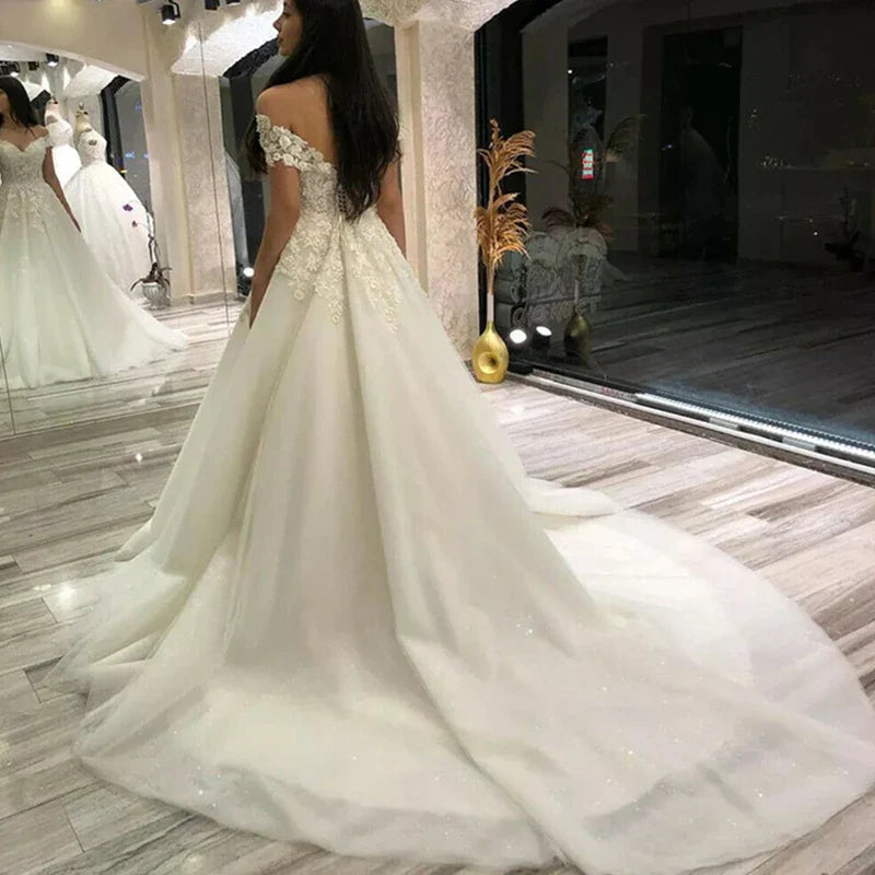 Sexy Off Shoulder Lace Wedding Dress Vintage Women's A-Line Gownes Robe De Soir é e De Mariage Bridal Dress Vestidos De Fiesta