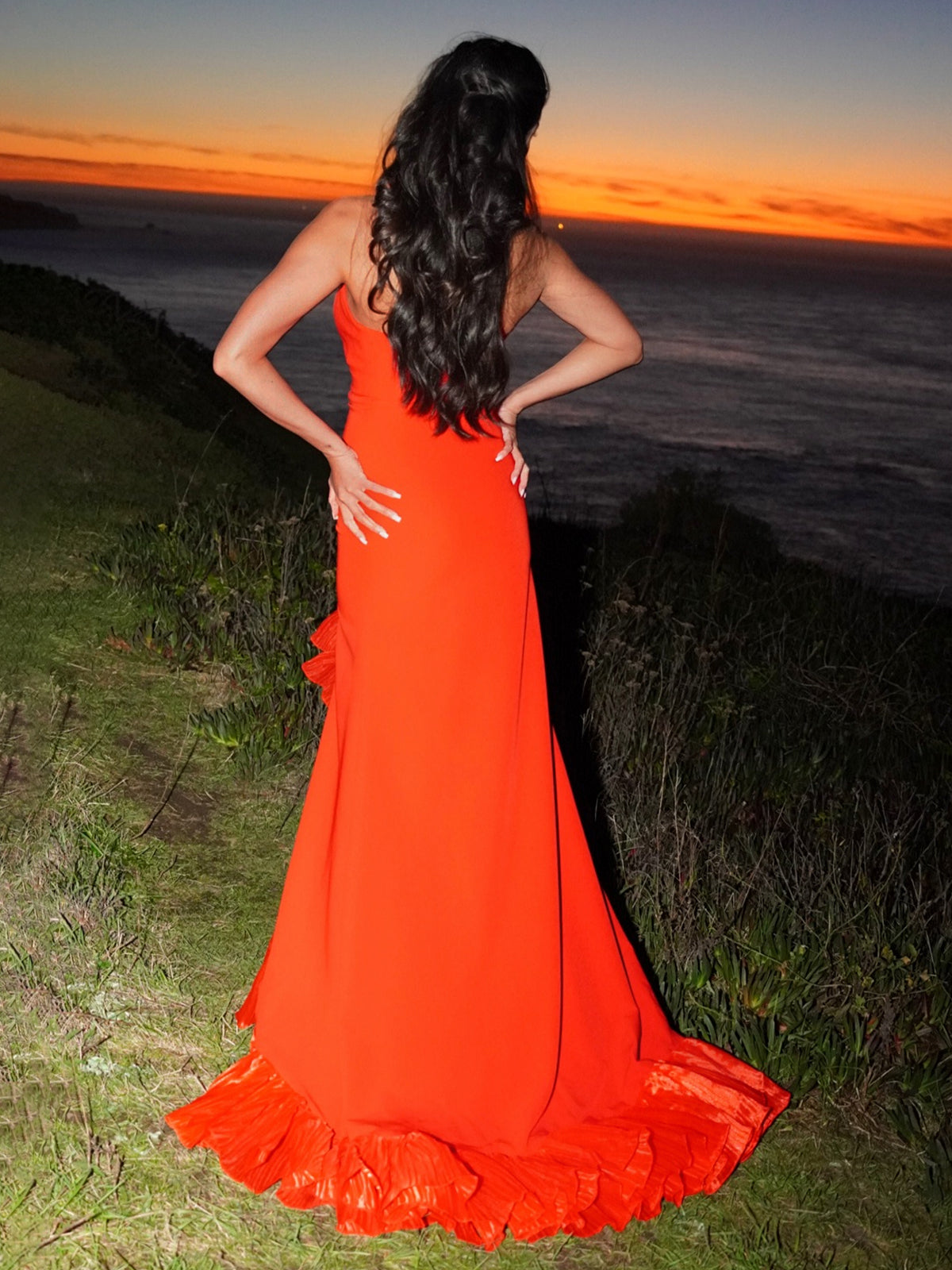 Introducing our enchanting Mermaid Style Dress in a vibrant red hue. designed to captivate and dazzle at your next event. Made from delicate satin fabric. this gown offers a perfect blend of lightness and volume. ensuring you stand out with grace.