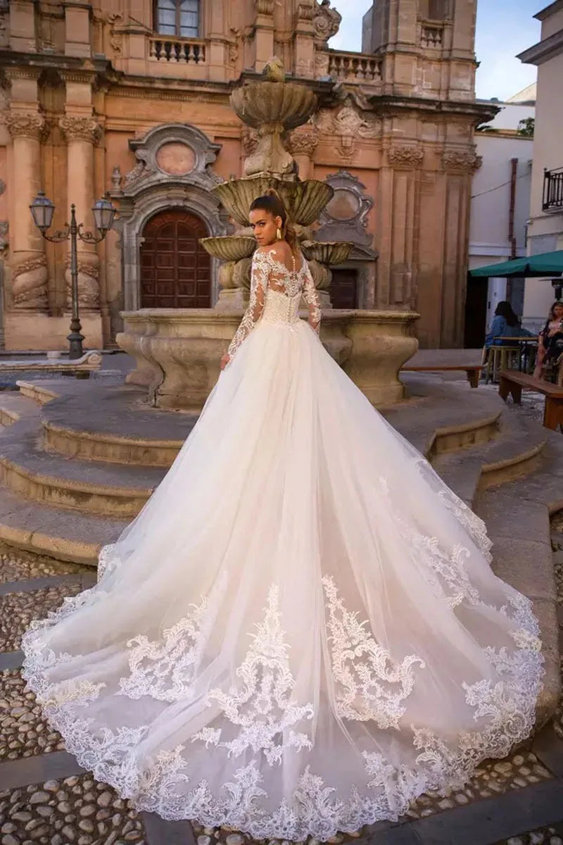 Vintage Mermaid Wedding Dresses With Detachable Train Long Sleeves Applique Beach Vestidos De Novia Summer Boho Bridal Gowns
