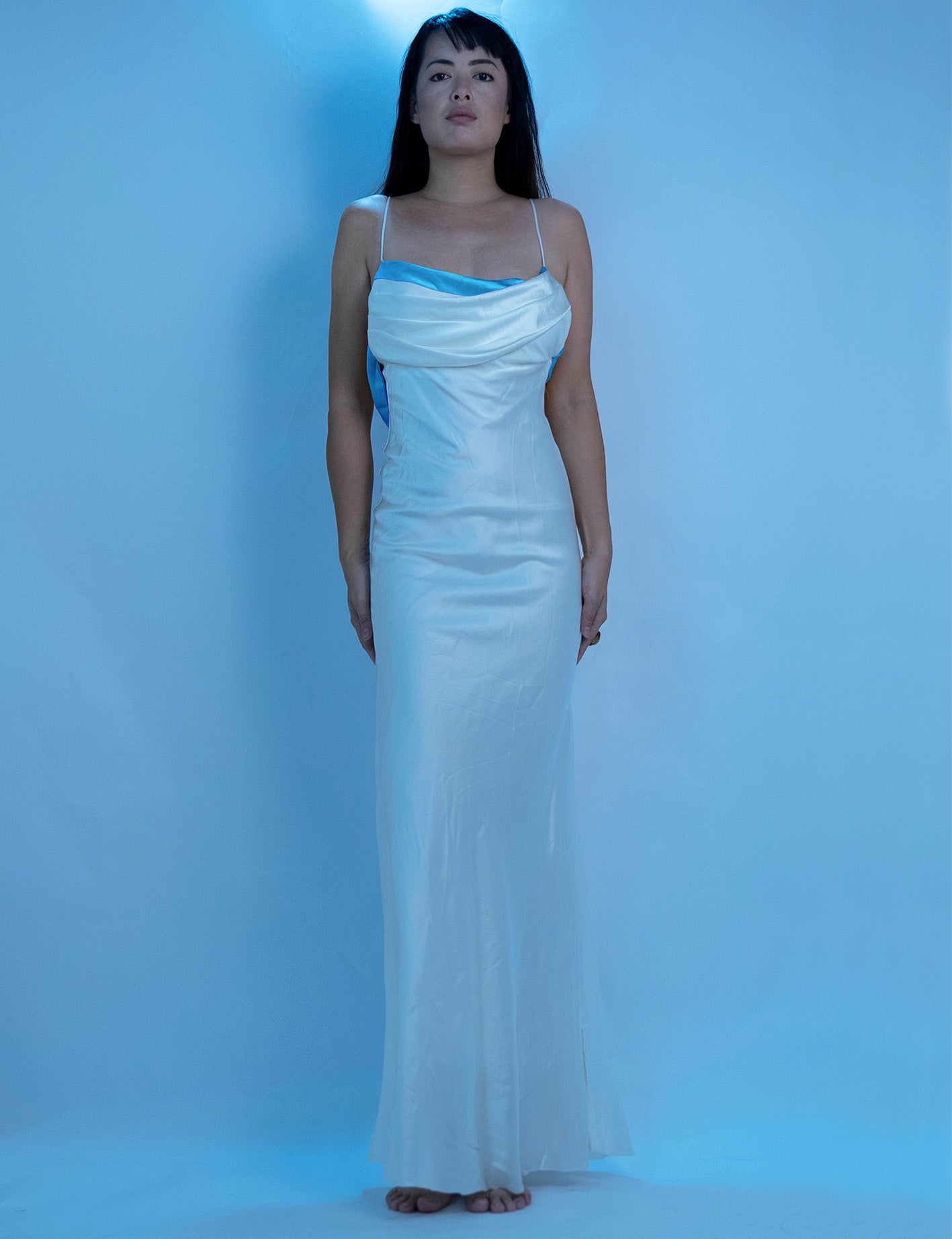 Designed with a draped butterfly shape back. it's made from mulberry silk with draped bust detailing and soft lining. and hidden adjustable straps to create the perfect fit.
