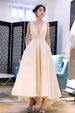 This A-line High Low V Neck Short Prom Dress Homecoming Dress is perfect for any occasion. The high low design paired with the short length make it a great choice for homecoming or prom. The champagne color gives it a classic. elegant look. It also features a V neckline for a modern. stylish silhouette.