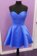 Discover the perfect blend of comfortable and chic in this sophisticated A-line Satin Sweetheart Simple Homecoming Dresses Short Prom Dress. Available in both pink and blue. this simple yet stylish dress is great for homecoming. prom. and more.