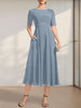 Hold the measuring tape at your hollow while a friend pulls it down to the length you want your dress.