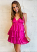 Hold the measuring tape at your hollow while a friend pulls it down to the length you want your dress.