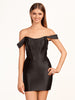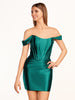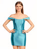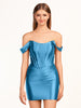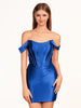 Step into the spotlight a stunning sheath off-the-shoulder homecoming dress. designed to create a lasting impression. Embrace your femininity sheath style that accentuates your figure in the most flattering way. The off-the-shoulder neckline and sleeveless design allow for an elegant showcase of your beautiful shoulders and arms. It is masterfully crafted from high-quality satin fabric that gives it a silky smooth texture and a beautiful sheen. The dress features a meticulously designed corset bodice and tasteful pleats that add to its charm and appeal.
