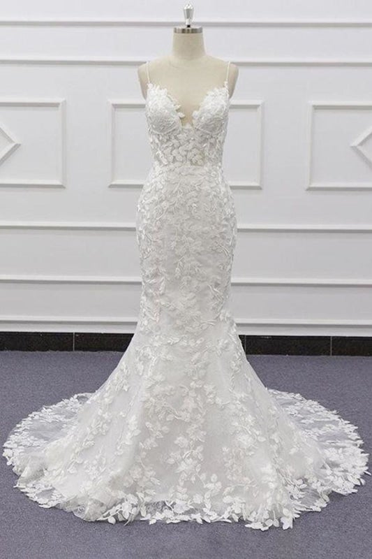 product name: Best Spaghetti Strap Appliques Mermaid Wedding Dress