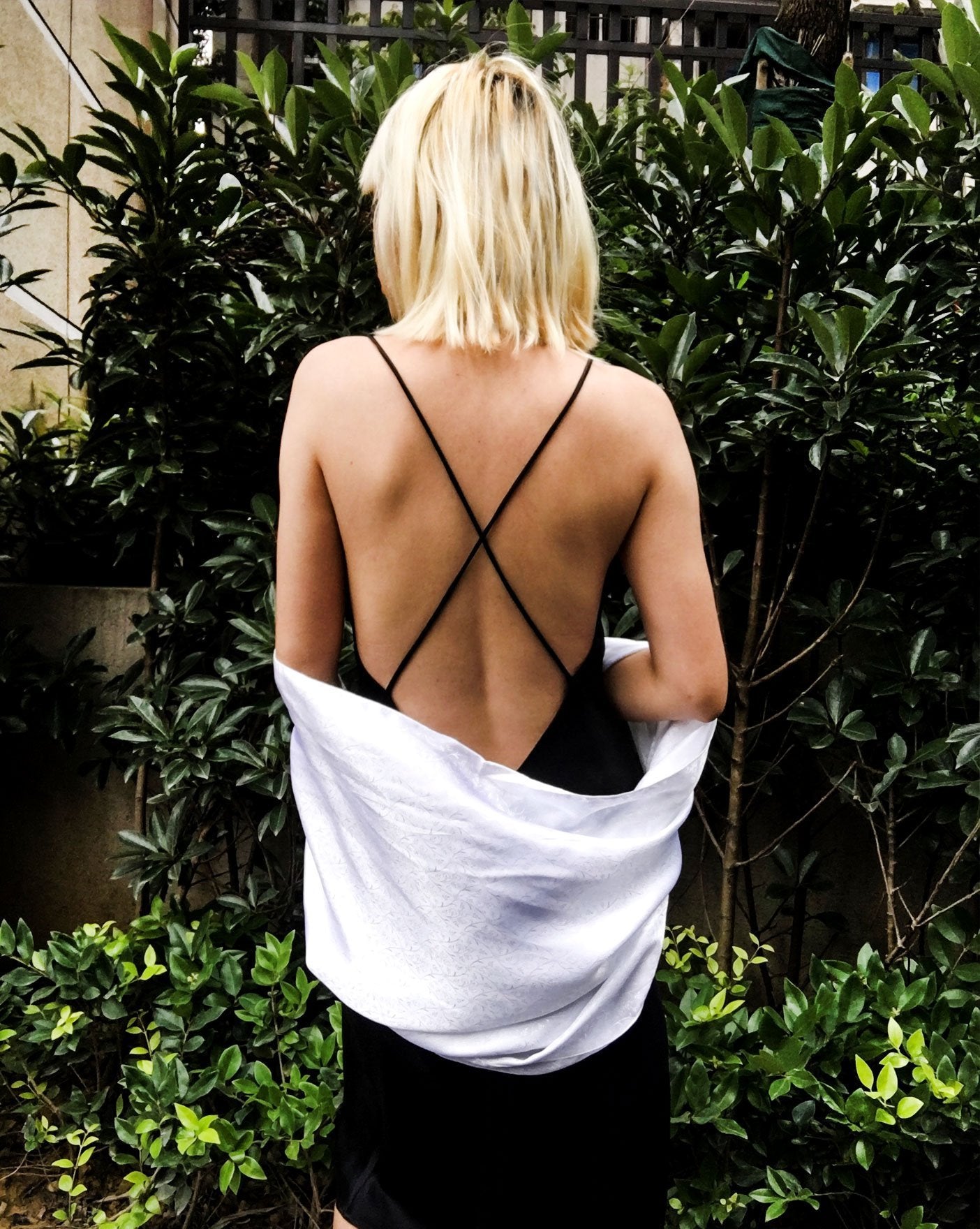 /Black Crossback Organic Satin Silk Cowl Neck Slip Dress by alashanghai