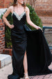 Step into the spotlight with our stunning Black and Red Sheath gown. expertly crafted from luxurious charmeuse fabric that drapes beautifully and feels exquisite against the skin. A fabulous selection for both evening dresses and formal dresses. with its court-train masterpiece features a captivating V-neckline that elegantly enhances your décolletage while adding a sophisticated touch to your look. The sleeveless design is perfect for showcasing your arms and allows for graceful movement throughout your event.