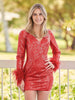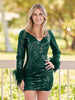 Get ready to turn heads V Neck Hot Pink Sequins Short Tight Homecoming Dress. Made from luxurious sequin fabric. this dress features a flattering V-neckline and long sleeves for a chic and sophisticated look. The vibrant fuchsia color and playful feather embellishments add a bold and glamorous touch. making sure you stand out at any event. With a short mini length and seamless zipper back. this stunning dress will showcase your inner diva with style and confidence.