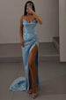 Make a statement of elegance and grace in this Sky Blue Strapless Satin Beaded Long Prom Dress. This dress is crafted from smooth satin and exudes a soft. luxurious sheen. perfect for any formal event. A fabulous selection for both evening dresses and formal dresses. with its sleek sheath silhouette highlights your natural shape. offering a figure-flattering fit that elongates your frame. The strapless design with a daring V-neckline adds a touch of sophistication. while the sleeveless style keeps you cool and confident throughout the evening. The intricate beading adorns the bodice. adding a glamorous sparkle that catches the light with every movement. The pleating enhances the overall structure. offering an elegant. refined finish. A dramatic split at the front allows for ease of movement. while the sweep train cascades elegantly behind you. adding a final flourish of glamour. This dress is the ultimate choice for those looking to shine at prom or any special celebration.