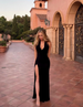 Hold the measuring tape at your hollow while a friend pulls it down to the length you want your dress.