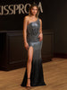 Step into sophistication with the Eluned Black One Shoulder Sheath Beaded Prom Dress. An ideal choice for both evening dresses and formal dresses. with its chic one-shoulder neckline that beautifully highlights your collarbone and adds a contemporary twist to a classic design. It is crafted from luxurious satin. the sheath silhouette gracefully follows your natural shape. ensuring a flattering fit that enhances your curves. The sleek black color exudes timeless elegance. making it a versatile option for any special event. The intricate beading embellishes add a touch of sparkle that catches the light and draws attention as you move. The daring side split not only adds a bold statement but also allows for ease of movement. making it perfect for dancing the night away.